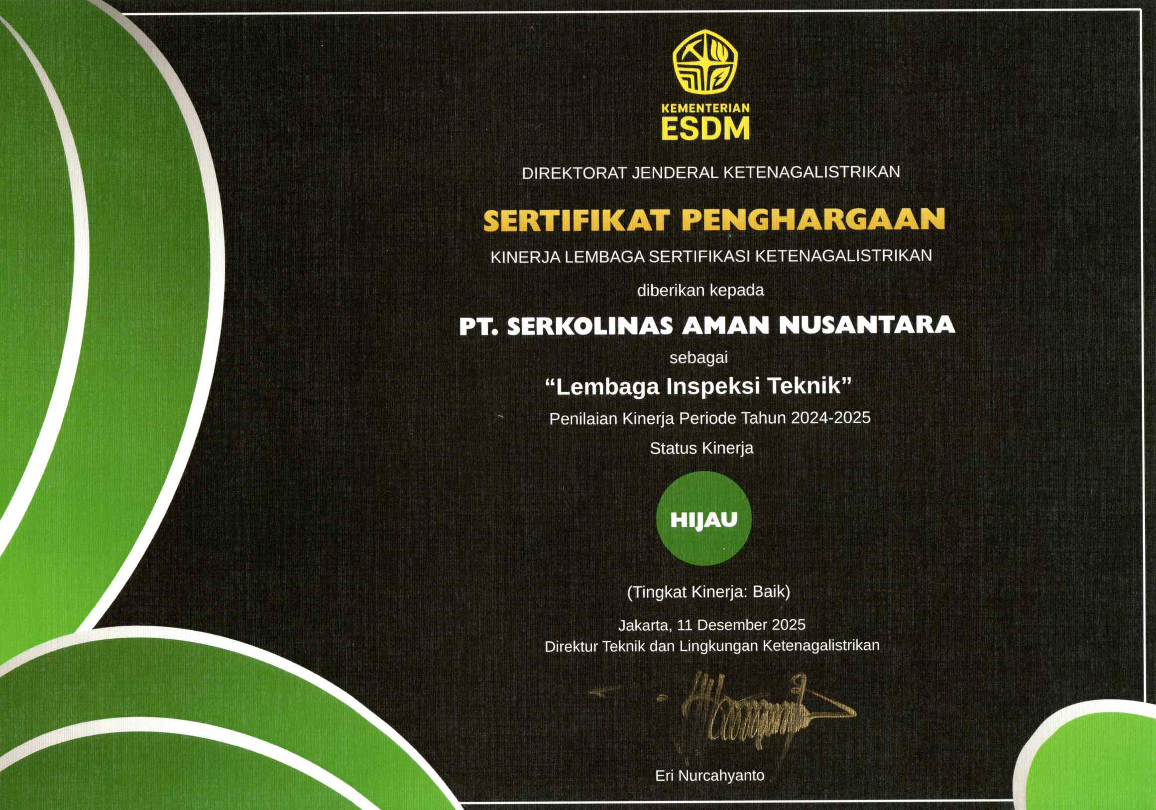 Komitmen PT. Serkolinas Aman Nusantara dalam memastikan keselamatan, kualitas, dan kepatuhan terhadap standar keselamatan kelistrikan sangatlah penting dalam menciptakan lingkungan yang aman dan handal. PT Serkolinas Aman Nusantara telah menunjukkan profesionalisme tinggi dan integritas yang patut dicontoh. Semoga prestasi ini semakin menginspirasi perusahaan dan seluruh pihak terkait untuk terus menjaga standar keselamatan yang optimal demi keberlanjutan industri kelistrikan yang lebih baik.