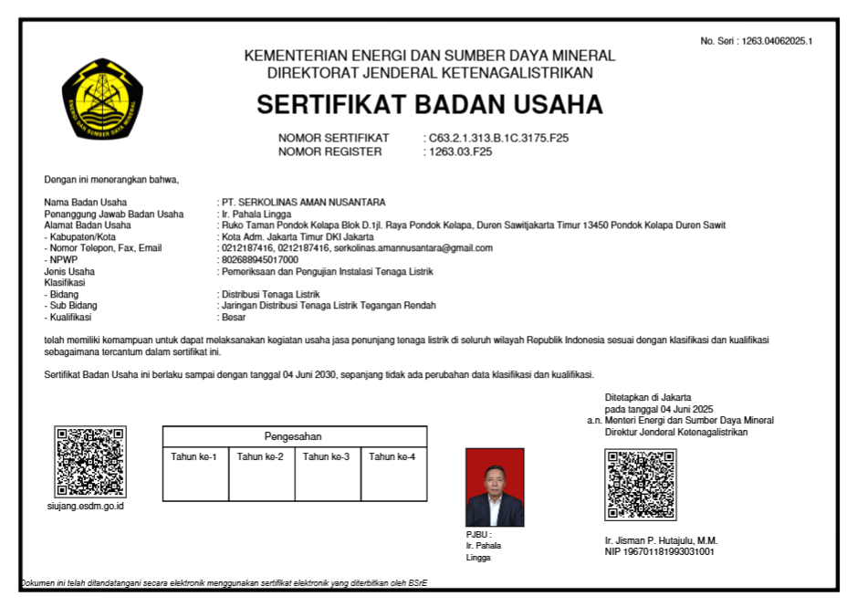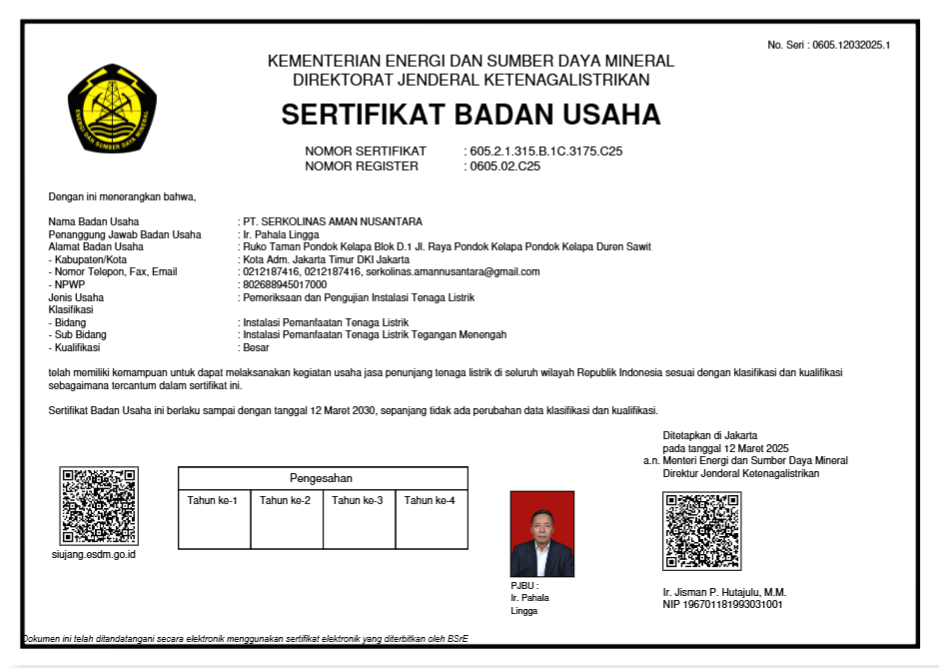 Berikut adalah Dokumen-dokumen perizinan yang terdapat di PT. SERKOLINAS AMAN NUSANTARA